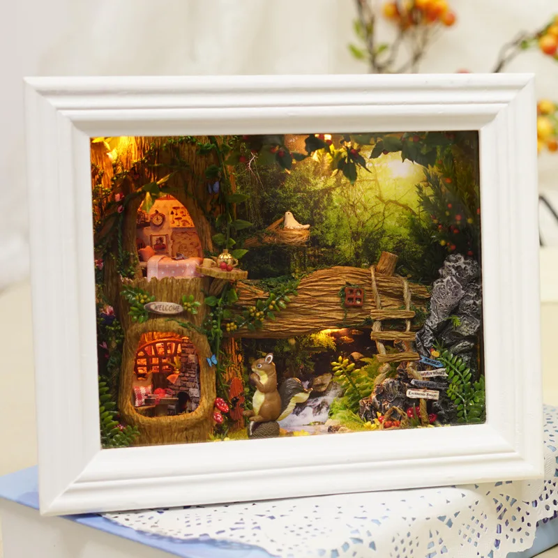 HIGH QUALITY Cute room diy Hut Nuts Station Frame-Wall-Mounted Handmade Assembled Architecture Model Toy Birthda